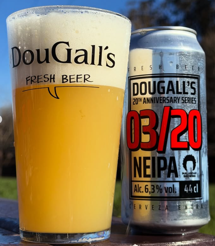 Dougall’s 3/20 es una New England IPA (NEIPA) elaborada en colaboración con Malandar para celebrar el 20 aniversario de Dougall’s. Jugosa, aromática y de gran carácter, destaca por su perfil frutal y tropical, con turbidez característica y una textura sedosa que hace del trago una experiencia envolvente. Una NEIPA moderna y equilibrada, perfecta para quienes buscan frescura y sabor en cada sorbo.